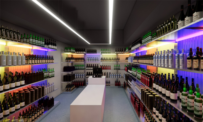 На сей раз у нас в работе специализированный магазин с узким ассортиментом – алкоголь. Продукция непростая, недешевая, требующая особых мер безопасности из-за хрупкой тары. Все это нам нужно учесть. Плюс архитектурные особенности помещения. Плюс предполагаемый дизайн интерьера. Плюс требуемое торговое оборудование, наиболее эффективная его расстановка. Ну и, конечно же, пожелания заказчика.