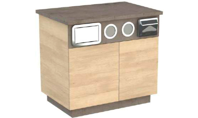 Модель имеет в конструкции диспенсеры для стаканов, паз для сбора мусора. На верхнюю горизонтальную поверхность устанавливается сама техника для варки кофе. Под заказ «Нордика» может создать вариацию оборудования: добавить диспенсеры, еще какие-то элементы.